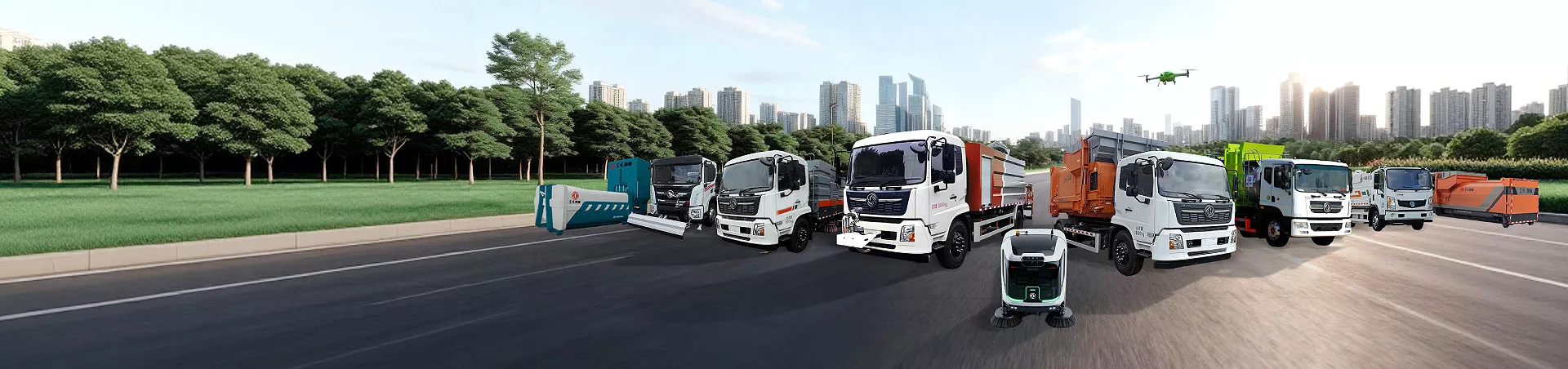 全面覆盖纯电动与天然气两大技术路线,包括洒水车、抑尘车、清扫车、路面养护车、洗扫车、扫路车及护栏清洗车等全系列车型,为城市道路的深度清洁与精细化养护提供一站式解决方案。